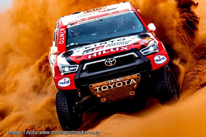 It was a tough day for Al Attiyah and Matthieu Baumel's SA-built Toyota Gazoo Racing Hilux. Despite ending second ahead of teammates SA hero Giniel de Villiers and Alex Haro, Attiyah lost 12 minutes to leader Peterhansel. Yazeed AL Rajhi and Dirk von Zitzewitz’ Hilux ended fourth, ahead of SA duo Brian Baragwanath and Taye Perry's Century, Martin Prokop’s Ford Raptor, the Peugeots of Sheikh Al Qassimi and Cyril Despres, Nani Roma’s BRX Hunter and Carlos Sainz’ Mini.