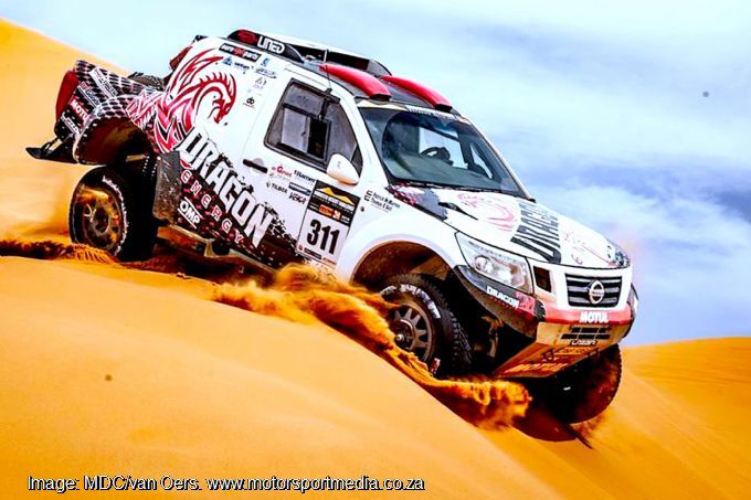 South African equipe Red-Lined Motoring Adventures with Sabertooth cut another significant notch in their belt when UAE-based British duo Thomas Edward Bell and Patrick McMurren piloted their SA-built Dragon Energy Nissan Navara across the finish line at Oujda-Saïdia to complete another brilliant adventure at the Morocco Desert Challenge on Saturday afternoon.
