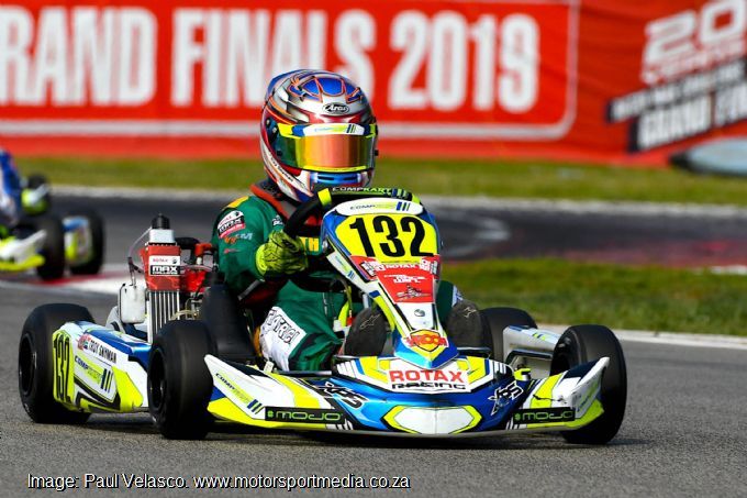 Like several of his teammates, South Africa’s Under-11 hope Reese Koorzen made up for a terrible week with a sterling drive in Micro Max as he made gained places in his Pre Final, four of which were on the final lap of the race. Cape Town driver Koorzen starts his Grand Final from 26th on the grid.
