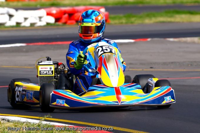 It was a day of thirds for Junior Max rookie Kyle, who qualified in that position before ending third in all three heats and third overall too, but the South African Mini Max champion was buoyed by his improved pace aboard his Charl Electric FA Kart through the weekend.