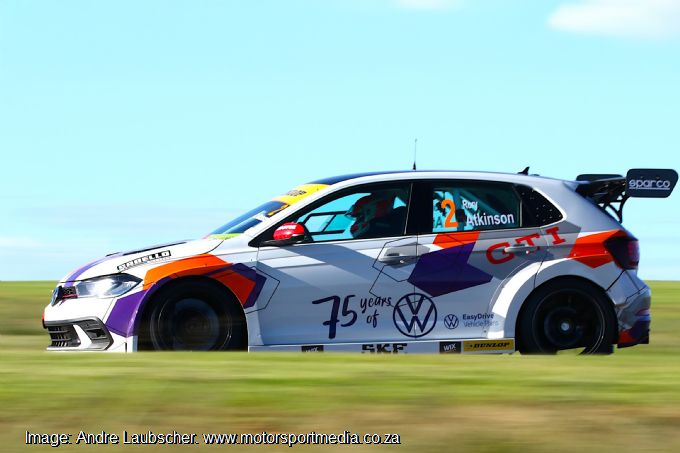Volkswagen Motorsport’s Rory Atkinson delivered a delightful maiden double victory in the Red Star Raceway’s SATC SupaCup races, while teammate Christopher Tait impressed in the Astron Energy Polo Cup races at the second round National Extreme Festival on Saturday.