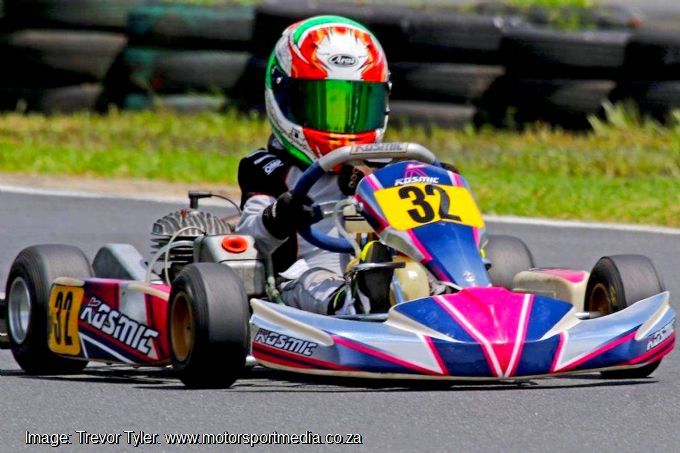 Little Luan Mostert had never driven anything other than his faithful Andre Mostert Vervoer Cadet kart before last week, but when team manager Ricky Perdigao suggested that he take the risk and step up to the Micro Rok class for the opening SA Rok Cup races up at Vereeniging, he jumped at the opportunity to travel up and learn all about a new Kosmic kart in a new class and at a new track at the Laserfiche Raceway.