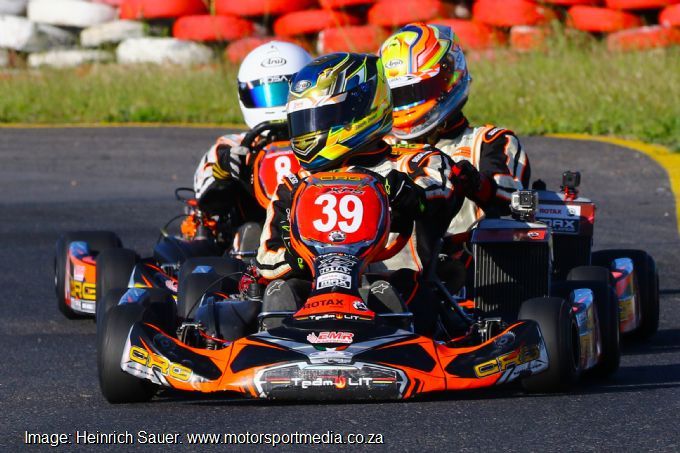 Jason Macbeath took under 13 Mini Rok pole, but Lucas Royston drove to a lights to flag race 1 win from Kyle Visser, Paul Malcolm and Macbeath, who bounced back to a dramatic late race 2 win over Malcolm after the dicing Visser and Royston dropped back on the final lap. Macbeath then took the final on another last lap move on Visser to take the heat over Joshua Smit and Visser as Macbeath won the day from a tied Visser and Royston, Malcolm, Smit and Conner Rensberg. Visser takes a 25-point advantage into the final over McBeath, who moved into second in the title race on Saturday ahead of Royston.