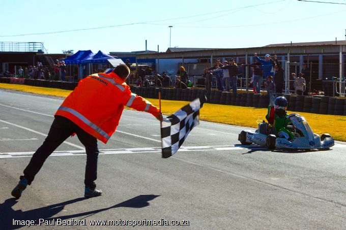 Caleb Odendaal took baby Bambino pole position over Keegan Beaumont and Tsepang Shisinwana, before Odendaal led Shisinwana and Rhoderick Simpson in the opening race and then beat Shisinwana and Rayan Karriem to the second race win. Odendaal initially led the final but Shisinwana moved ahead early on and led his battling pursuers through to a penultimate lap shake-up that saw Odendaal grab the win and the prize from rookie Wadeley, Karriem, Simpson, Keegan Beaumont, Kai van Rensburg and Shisinwana.