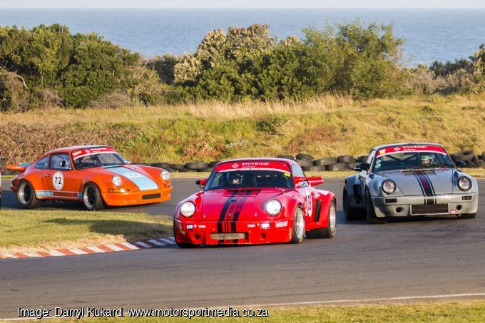 Richard de Roos (Porsche 911 RSR) ended fourth from Sun Moodley in his contemporary IPC Porsche 911 GT3, Historic Porsche 911 RSR duo Andre van der Merwe and Stefan Puschavez and Lotus pair Norman Witt and Sean Hurly sandwiching the slowed Ellison and Carruthers. Schuhardt then charged to a lights to flag race 2 win over the recovered Ellison as Witt overcame de Roos early on to end third with Sean Hurly and Stefan Puschavez next up after Pott and Moodley also hit trouble.