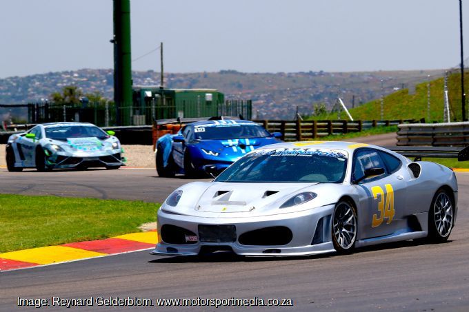 Giannoccaro twins, Gianni’s BISC Transport and Ricky’s G&H Transport Lamborghini Supertrofeos shared the fourth row from Xolile Letlaka’s Class A Stradale Into Africa McLaren 650S GTS. Class C man Deon du Plessis’s KTM X-Bow put Class B man Ant Blunden SAJCO GSP CV Joints Porsche 997 GT3 Cup between him and Class C rival Marius Jackson’s MJR Motorsport Audi R8 LMS GT4. Class D leader Uli Sanne’s BMW Z4 M Coupé was next from Jimmy Giannoccaro’s G&H BMW M4.