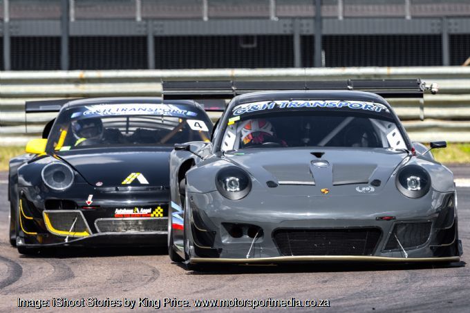 Never rule out GT3 regulars Marius Jackson’s MJR Audi R8 LMS GT3, Gianni Giannoccaro’s G+H Transport Nissan GT-R GT3, Ricky Giannoccaro’s G+H Transport Lamborghini Gallardo Trofeo in that spat. Or Mark du Toit’s Trans Africa Ferrari 430 GT3 and Damian Hammond and his Trinity Security Lamborghini Trofeo.