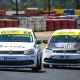 Busi made best of the getaway to lead Swart, but the first race was red flagged hardly before it had even started, to pluck Barden’s stricken Golf out of the Turn 4 tyre barrier. Swart made good at his second chance to get away from Busi and Meder. Van Zyl was later stripped of his fourth place to allow Visser, Roux and Sandenbergh through, after Victor stopped and Geldenhuys spun out.
