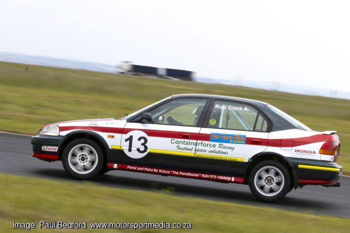 Qualifying delivered a mixed up grid as Jonathan Visser’s Volkswagen Jetta demoted regular frontrunner and Group N veteran Mike O’Sullivan’s Mosport Honda Ballade to second. McLarty’s Mazda impressed to qualify third as Stewart made it 50 unbroken years of racing a car on track on the trot. Rob Clark failed to set a time after Containerforce Honda Ballade, shed an oil pipe on his out lap, relegating him to the back of the grid.