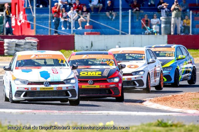 Atkinson kept Visser under pressure all the way to the flag, but there was nothing he could do to stop the delighted Volkswagen Rookie champion Kyle from taking his maiden Astron Energy Polo Cup victory. Ethan Coetzee kept his title hopes alive by taking a couple of points back in third ahead of Scheepers, who beat champion elect Loosemore to fourth. Mo Karodia edged Tyler Robinson for sixth ahead of Bertholdt, Marais and Goodman. Masters top three, Wayne Masters, John Kruger and Derick Smalberger passed the battling Muzzulini and Singh. Masters drivers Ferro, Croeser, Gouws, Dale and Barbaglia followed after Charl Smalberger retired.