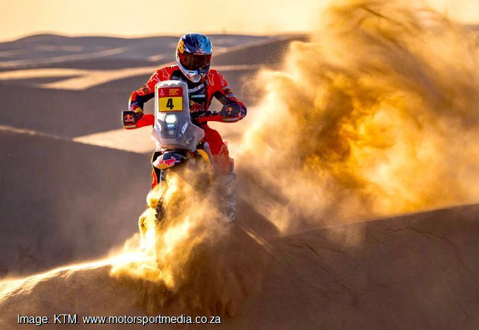 The upshot is that Daniel Sanders’ KTM now leads Tosha Schareina’s Honda by 13 minutes with Ross Branch third on his Hero, a similar gap behind. Howes, Brabec and van Beveren follow, with Cox tenth, Rally 2 leader Canet 11th and Docherty third in Rally 2 in 16th. Compatriot Arron Mare is 26th, while Dwain Barnard was 60th and Willem Avenant 105th. The swings and roundabouts of the Dakar bike race now see the riders that suffered on Wednesday, in a strong starting position on Thursday’s 428 km run to Hail, deep in the Saudi desert.