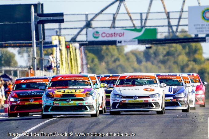 There was a surprise in qualifying when ever-improving young lady driver Tyler Robinson claimed the first point of the season by putting her AF Fans Team Red Polo on pole position from Rory Atkinson’s Industry Petroleum car, Shrien Rajpaul’s Dubcorp version on his Astron Energy Polo Cup debut, Ethan Coetzee, Hannes Scheepers’ Dainfern Dental entry and Mo Karodia and his Fast 5 Motorsport LTR Polo.