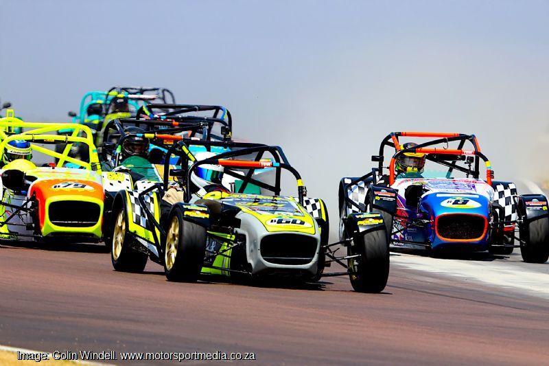 Rudi Barnard took the first Lotus Challenge race from JP Nortje and David Jermy before Nortje took the second from Barnard and Chris Gable and Barnard beat Nortje and Jermy to the final. Nick Hodgson won two Locost class heats to Andrew Fulton’s one. Gavin Botha won INEX Legends heat 1 from Richard van Heerde, Tyler, Posthumus and Sebastian Venkov. Posthumus beat Venkov, Botha and Richard van Heerde in race 2, before Venkov did the double in the finale over Botha, Posthumus and Dylan Fourie.