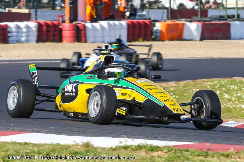 The DOE Formula Vees powered by Lubri Fuel, stand apart from that tight championship scenario, where Lendl Jansen seems en route to an inevitable 2025 crown. His progress was however delayed when Theodore Vermaak added another two wins last time out. Still, Jansen sits in an almost indomitable 51-point championship advantage ahead of an almighty scrap for second between van den Berg, Vaughn, and Peter Hills and the rapidly closing Vermaak.