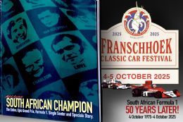 “That makes 4 October 2025 a most significant anniversary in Formula 1, South African and motorsport history. And the ideal opportunity to celebrate it. South African Champion will be at the Franschhoek Car Festival this weekend, where we will show the book, talk on the history and also make another  important book announcement.”