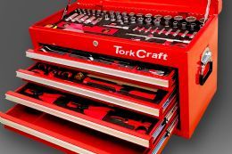 Famous for its great selection of tool boxes, Tork Craft has just unpacked its King of Boxes in its new 254-piece four-drawer and top shelf box. A comprehensive tool set in a superb storage solution, the Tork Craft 254-piece box is designed to deliver the ultimate tool solution, be that in the shop or mobile.