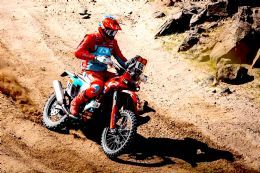 Then disaster struck Docherty, who was forced to stop with a damaged rear wheel to put paid to his hopes of the Rally 2 win. Michael had not been headed in class until then. That left Branch to contend with Honda trio Schareina, Brabec and another US rider, Skyler Howes, with Sanders, Chilean Hero Moto rider Ignacio Cornejo, Argentine Luciano Benavides’ KTM and French Honda man Adrien van Beveren all in the fray in what promised to be the closest Dakar Day result in years.