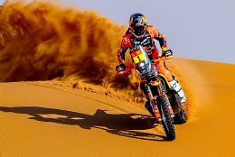 Dakar’s ninth Bike day proved a day of drama and intrigue as leading riders had to fight for their lunch on Tuesday. On another cruel day for early leaders Edgar Canet and Ross Branch, Daniel Sanders fought back from 34th earlier in the day to end up second behind Spanish Honda rider Tosha Schareina and move back into the overall lead for KTM.