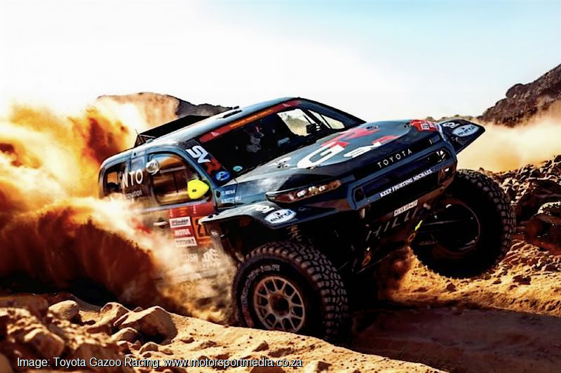Lategan and Cummings were indeed quick early on, but not quite as quick as US factory Ford Raptor crew Mitch Guthrie and Kellon Walch, who led the Toyota by 25 seconds. The pace up front was frenetic but the Americans lost time, leaving Al Attiyah leading Loeb, Ekstrom and Lategan, all of them within fifteen seconds, with Aussie former bike winner Toby Price and Armand Monleon’s Overdrive Hilux and South African Guy Botterill and Spaniard Oriol Mena’s SVR version also within a minute of the lead.