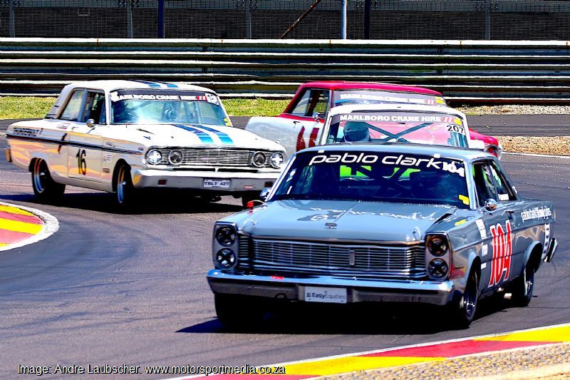 Zimbabwean Denzil Bhana’s Ford Anglia beat Alan Poulter and his Volvo 122s to the opening Legends Little Giants win. Alfa Romeo Giulia trio, Super men Marc Miller,Roger Houston, and Francesco Lombardi’s Sprint GT followed from GSM father and son, John’s Dart and Chad ten Doeschate’s Flamingo. Bhana beat Poulter and Miller again in race 2 from Lombardi, Carel Pienaar’s Lotus Cortina and John and Chad ten Doeschate.