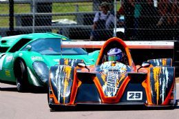 Rui Campos’ more modern Shelby Can Am proved a touch too hot for Lola T70 trio, Larry Wilford’s MK3B, Mark du Toit’s Coupe and Neil Lobb’s MK3B to handle in the first Legends of the 9 Hour Sports and GT race. Son Keegan Campos beat Andre van der Merwe’s similar Porsche 911 RSR to the GT win in fifth and sixth from Jonathan du Toit‘s Chevron B8 and Seef Fourie Jr.’s Lolette. Rui Campos went on to do the double from Wilford, Mark, and Jonathan du Toit and Fourie Jnr, GT men George Avvakoumides’s Herman Kluge Porsche RSRs and Swede Janne Kling’s genuine Ford GT40.