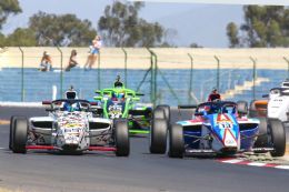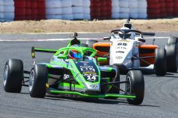 The opening race proved an absolute cracker. A bunch of up to eight cars fought hard up front with a few more entertaining dices throughout the field behind them. Mikel Bezuidenhout and Renzo Ribeiro initially fought furiously for the lead when the safety car was called to clear Kent Swartz and Liam Polome’s cars from the turn 1 sand trap. Their spat got a touch too close as they quite literally fell over each other, but MSA4’s safety halo head protectors ensured neither driver was hurt in what could have been a far scarier incident.
