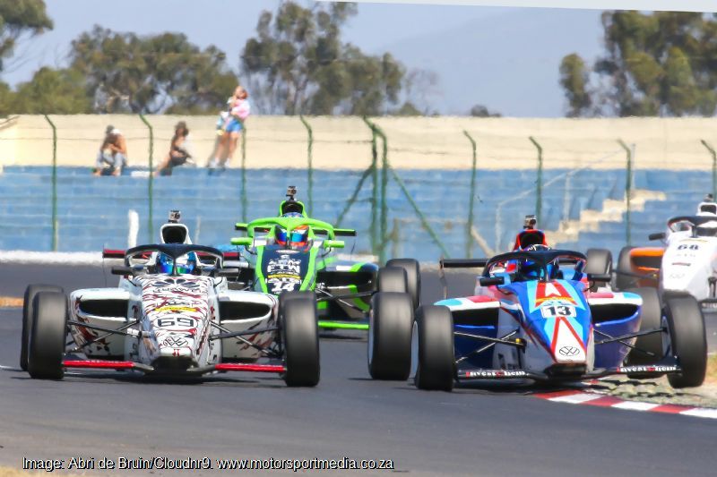 MSA4 regulars, Shrien Naidoo’s Production X, Kent Swartz and Liam Polome’s Red Dot Vantage machines and Apex Cordset Kokoro lass Anastasia Gerasis completed the top ten. They started ahead of Ndzalo Khoza’s Horizon Dynamics car, graduate karting lass Gianna Pascoal’s 76 Legacy WOrr machine, Chase Haskins’ Reach for a Dream supporting Kokoro car, Investchem lass Simphiwe Mohlahlo, Corsa Dei Gemelli lad Wianko Fourie and Aadam Kajee’s 76 Legacy WOrr entry. Ian Schofield’s Investchem Mygale led the Formula Ford Kent grid from Nicholas van Weely’s Magnificent Van Diemen and Alex Vos’ and Allen Meyer’s similar DV and Investchem cars.