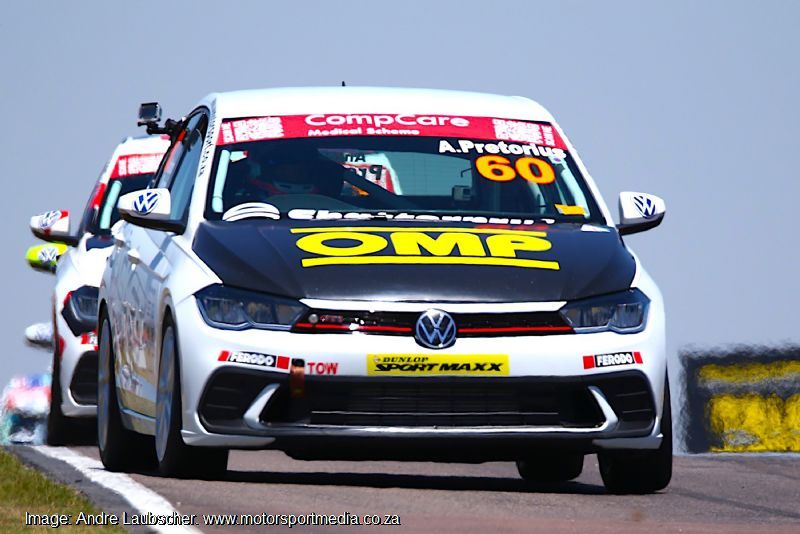 Charl Michael Visser wrapped up the 2023 CompCare Polo Cup championship with third in the opening race, as his title rivals, Dawie van der Merwe and Anthony Pretorius won the two races. Pretorius took the first heat off pole position from van der Merwe and Visser, who did what he had to and followed Dawie home to clinch the title. Jason Loosemore was fourth from Nathan Victor and Farhaan Basha. Van der Merwe took a red flag interrupted race 2 from pole position ahead of Basha, Pretorius. Visser and Victor.