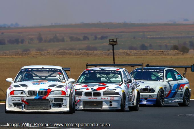 Racing commenced following a minute of silence in Vigen’s honour, with the first BMW M Performance Parts Racing Series Class A, B and C race cut in two after a car spectacularly dispensed blazing oil over much of the circuit to bring out the red flag to clean it all up. Leon Loubser was the only Class A survivor to make the finish in his 335i from Class B duo Renier Smith, Cape man Mansoor Parker and Oz Biagioni. Another Cape entry, Anwar Levy took Class C from Nicholas Fischer and Bennie Luyt. Reinhardt Miller took the opening D and E race from Theuns Nel, Neil Reynolds and Nicholas Herbst, while Claudio Jardin beat Arri van Heerden, Mike Grobler and Dewald Smith to Class E honours.