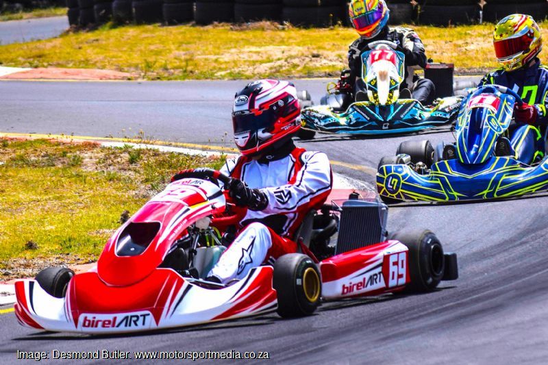 The next four classes all race 125 cc water cooled 2-stroke engines with chain drive and rear axle braking. Racing full sized chassis, 30 bhp Senior Max will see Muhammad Wally fight old rivals Olerato Sekudu, Roshaan Goodman and Moosa Kajee and ex-Juniors, SA champion KC Ensor-Smith, Nik Roos and Erich Heystek in Gauteng. SA champion Charl Visser has Reza Levy, Storm Lanfear, and former Juniors Ethan Stier and Matthew Wadeley to race in the Cape, and Troy Snyman races Shrien and Dhivyen Naidoo, Jono Pieterse and Yi Fan Li in KZN.