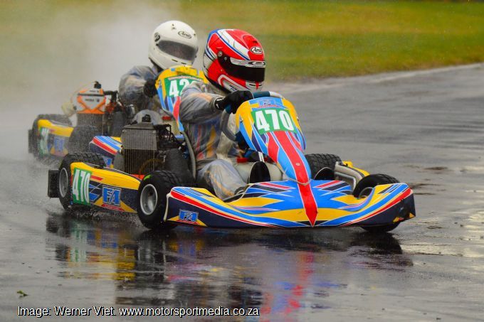 Blaine Rademeyer remains unbeaten in this year’s Gauteng Northern Regions Senior Max Karting Championship following a cold, wet and ultimately dark day’s racing at Vereeniging’s Laserfiche Raceway Saturday. Rademeyer qualified on pole before powering to a trio of wins in spite of the attentions of world Mini Max champion and a finale run in floodlit conditions.