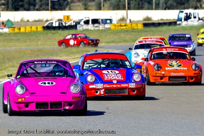 The Historic Racing South Africa away weekend to Phakisa in the Free State delivered some exciting and giant-killing action as Peter Bailey’s Porsche came out on top in the Sports, GT and Saloon races with an angry Escort in close attendance. The Charlies Super Spar Pursuit series meanwhile bounced back from a mass break-out in race 1 to see Richard Tudor-Owen and his Mercedes-Benz take a rare double race win.