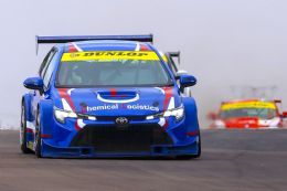 Wolk was in fine form through practice, but so was van Rooyen, who pipped the similar blue car to put the Gazoo machine on pole position with van der Watt a very close third from Temple. Temple’s race seemed to last a couple of hundred metres after he and van der Watt tangled in the first corner. Temple was then tagged by Mandla Mdkane’s Gazoo Corolla, with the Chemical Logistics car ending up in the sand, its left rear corner ajar.