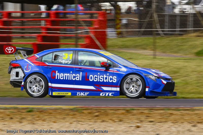 Investchem Racing’s Scott Temple and the WCT Engineering team emerged as the Global Touring Car heroes following a fairytale come from behind maiden victory aboard his Chemical Logistics Toyota Corolla at Zwartkops on Saturday. Teammates Robert Wolk ended second and third overall, leaving Wolk a solitary point behind new championship leader Michael van Rooyen’s Toyota Gazoo Racing Corolla after two rounds of the championship.