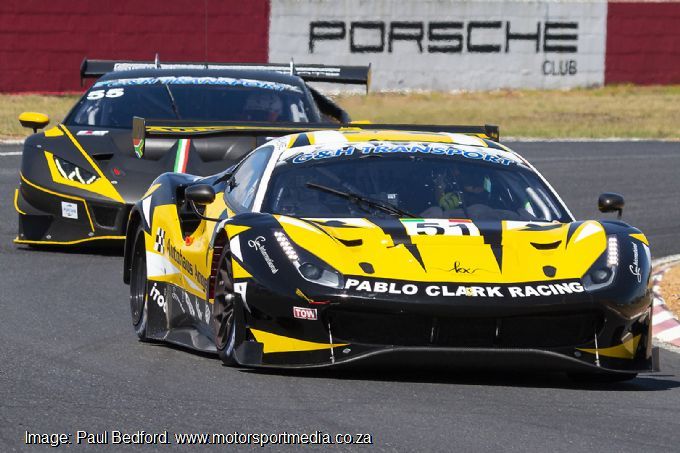 Marcel Angel heads up from the Cape to defend his lead in the Balance of Performance National GT class in the Autohaus Angel Ferrari 488 GT3. The Jozi-based Pablo Clark Racing-prepared machine will have the Giannoccaro brothers Gianni and Ricardo’s G&H Transport Lamborghini Gallardos, Marius Jackson in his Megafibre Audi R8 and series chairman Mark du Toit’s Trans Africa Racing Ferrari 430 GT3 to keep him honest.