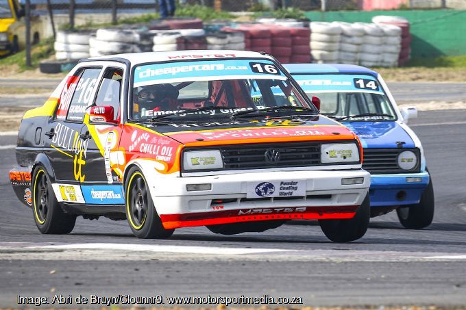 Giordano Lupini scored his ninth Class B podium on the trot as he brought his Bullion IT Banhoek Chilli Oil Jetta 2 home third in a fog challenged cheapercars GTi Challenge race at Killarney on Saturday. With qualifying and the first race cancelled as thick fog refused to lift under high cloud until midday, Lupini ended up thousandths of a second adrift following in a race-long battle for second with Jaco Lambert after he fought back from a slow start.