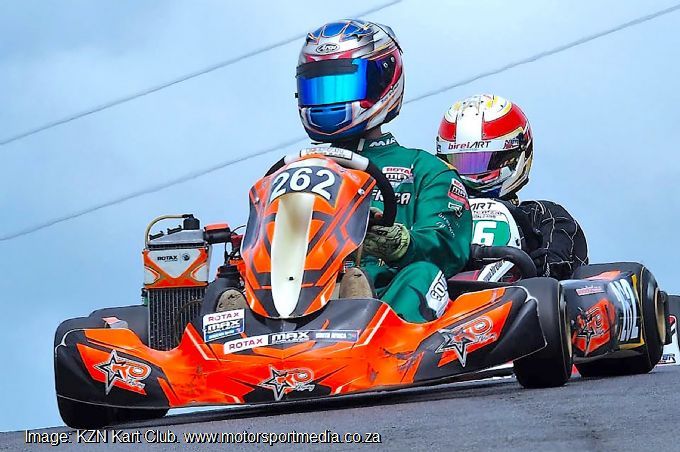 Travis Mingay was another to sound a warning of possible KZN National success with an under-13 Mini Max triple win over Harry Rowe and Troy Pieterse. Rookie karting lass Gianna Pascoal was third and second in the last two races. Taylin Patel trotted to three under-11 Micro Max wins from Yashlan Chetty and Ryan Falconer, and Teiyan Chetty and Kayden Pistauer shared Bambino wins. Kyle beat Andrew Nivison and Lisa Mingay to win 4-stroke, while Steve Christy won the Handicap race.