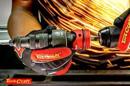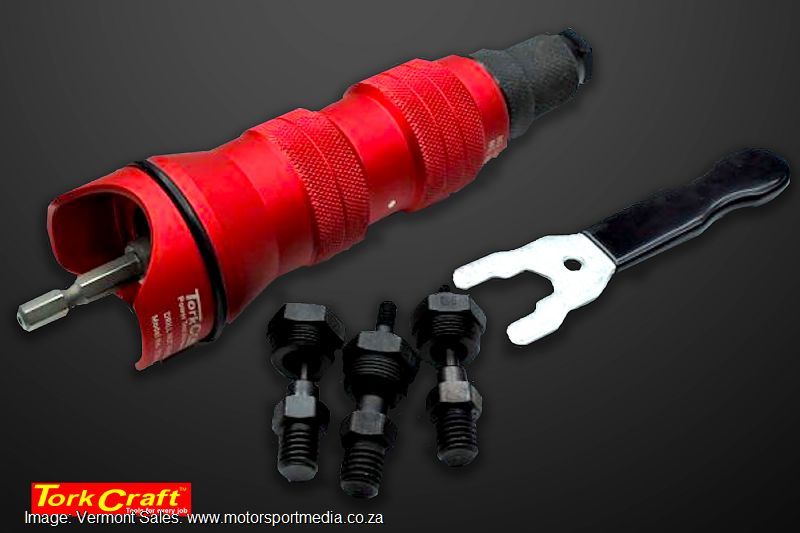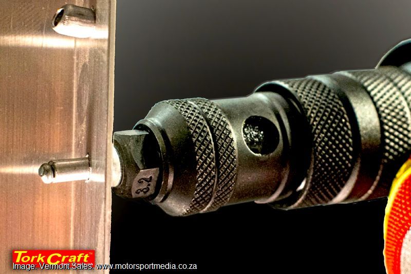 Both accessories are crafted from black and red anodized aluminium and come packed in their own plastic blow moulded cases with all their necessary components. Tork Craft encourages users to wear proper safety glasses and gloves when handling the tool, and to ensure that the job is properly fixed or clamped before riveting.