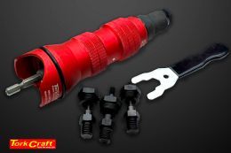 Moving on to those ultra-heavy duty accessories, the M3 to M6 drill nut riveter is designed to deliver ultimate air and nut riveting off the Tork Craft 20V impact driver. The Tork Craft 8mm hex shank rivet drill adapter with handle is meanwhile perfect for blind riveting in all materials. It comes with a set of 2.4 to 6.4 mm nose pieces.