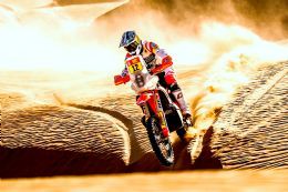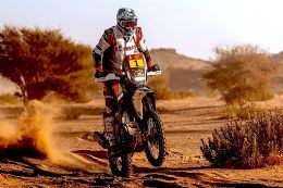 Overall leader Australian Daniel Sanders’ KTM led early on, but he was soon gobbled up by Santolino on his Sherco and World Rally 2 Champion Cox on his Rally GP debut aboard his BAS World KTM. Cox was ahead of Santolino by the end of the next sector, with Botswana’s World Rally Raid Champion Branch third on his Hero Moto ahead of Spaniard Tosha Schareina’s Honda Portuguese rider Rui Goncalves’ Sherco and Californian Brabec’s Honda.