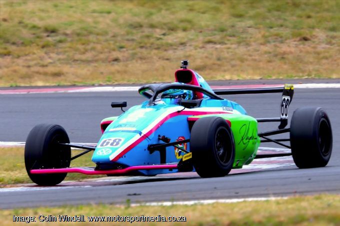 Adriaan Nel’s Central Cycles MSA4 lined up seventh ahead of debutant karting graduate Kent Swartz, Ndzalo Khoza MakaselaAir car, and Apex Cordset lass Anastasia Gerasis in tenth. Nicholas van Weely was back in eleventh ahead of Jorden Moodley and Simphiwe Mohlahlo. Investchem trio, Ian Schofield, Allen Meyer and Rick Morris meanwhile topped the old school Formula Ford Kent grid ahead of Magnificent Paint & Hardware man Ron van Weely.