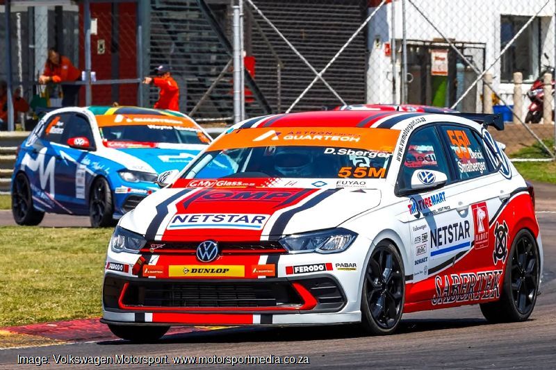 Scheepers, Atkinson, Coetzee, Robinson, Karodia and Durban Dubcorp driver Shiren Rajpaul went through to Superpole, where Hannes Scheepers emerged on pole, seven hundredths clear of Tyler Robinson, Rory Atkinson, Ethan Coetzee, Mo Karodia and Rajpaul. Frustrated to miss Superpole, Naidoo and Goosen lined up seventh and eighth. Team Red lad Roshaan Goodman followed from Volkswagen rookie Judd Bertholdt, Nirav Singh, CPS Warehouse man Bevin Masters, Team Red rookie Milan Emslie, and Pierluigi Muzzulini’s FSS car.