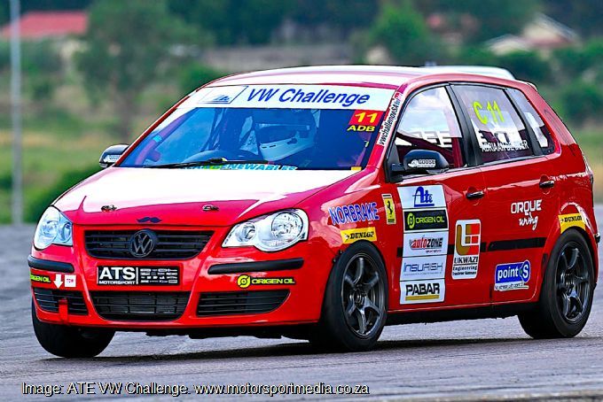 Goosen, who recently won on his national Astron Energy Polo Cup debut, had little trouble in planting his AA Certified OMP LTR Polo on pole position back in the ATE VW Challenge ahead of Anthony Lessing’s PABAR version and Mellow Velo man Ian Walker. Fast ATE Brakes lady Elna Croeser followed from the returning Mydi Mfana’s Clean Renewables car and Mweza Trans driver Dewald Theron.