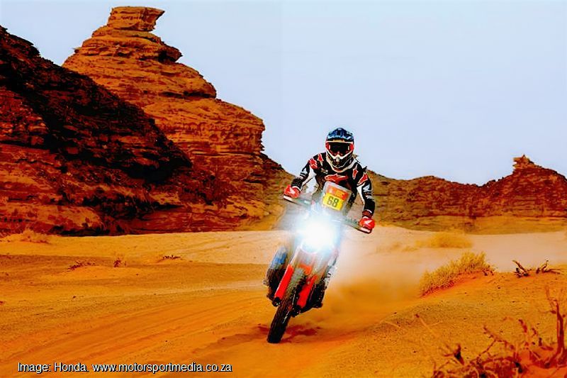 Honda Factory CRF450 riders, Spaniard Schareina and Californian Brabec led the way through the first waypoint ahead of South African Rally 2 sensation Michael Docherty’s KTM and Tork Craft rider, Ross Branch on his Hero Moto 450 Rally. 2025 winner, World Champion and 2026 leader, Aussie Daniel Sanders sat sixth on his Factory KTM 450 Rally. Docherty and Branch then shared out the lead until just before mid-distance.