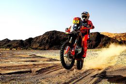 Overall Luciano Benavides’ KTM leads Ricky Brabec by all of 41 seconds with Honda teammate Tosha Schareina third, 16 minutes adrift. Daniel Sanders is just 17 seconds further back in fourth from Howes, van Beveren, Cornejo, Branch and Cox ninth in Rally GP. Despite not winning a stage, Honda’s Preston Campbell leads Rally 2 by three minutes from Toni Mulec and Ben Melot leads Josep Perdo by eight minutes in Original.
