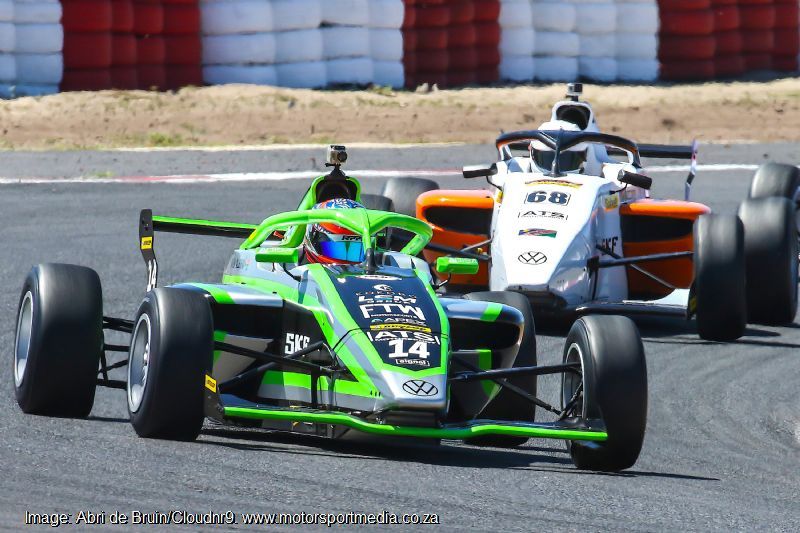 MSA4 regulars, Shrien Naidoo’s Production X, Kent Swartz and Liam Polome’s Red Dot Vantage machines and Apex Cordset Kokoro lass Anastasia Gerasis completed the top ten. They started ahead of Ndzalo Khoza’s Horizon Dynamics car, graduate karting lass Gianna Pascoal’s 76 Legacy WOrr machine, Chase Haskins’ Reach for a Dream supporting Kokoro car, Investchem lass Simphiwe Mohlahlo, Corsa Dei Gemelli lad Wianko Fourie and Aadam Kajee’s 76 Legacy WOrr entry. Ian Schofield’s Investchem Mygale led the Formula Ford Kent grid from Nicholas van Weely’s Magnificent Van Diemen and Alex Vos’ and Allen Meyer’s similar DV and Investchem cars.