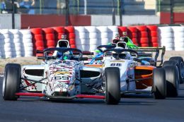 The opening race proved an absolute cracker. A bunch of up to eight cars fought hard up front with a few more entertaining dices throughout the field behind them. Mikel Bezuidenhout and Renzo Ribeiro initially fought furiously for the lead when the safety car was called to clear Kent Swartz and Liam Polome’s cars from the turn 1 sand trap. Their spat got a touch too close as they quite literally fell over each other, but MSA4’s safety halo head protectors ensured neither driver was hurt in what could have been a far scarier incident.