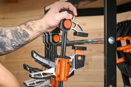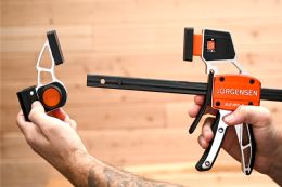 Ever wished you had more than two hands when clamping and prepping a piece for a woodworking job? Well, Jorgensen’s unique E-Z Hold bar clamps quite literally free up a hand to allow rapid and easy clamping. It’s a case of ‘look, ma! one hand!’