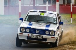 Team leader Paul van Wyk driving with Tiaan Rabe, scooped class S3 as they narrowly missed the overall title in their black and red Team acciDent Guru VW Golf 1 GTi, while Ian Long & Brian Hoskins similar white car wrapped up the S2 title en route to third overall. Brenton Crow and Theo Croy also enjoyed an encouraging guest outing in the team’s third silver Golf, but it was not easy going for any of the Gurus — nor for that matter, any other of the crews.