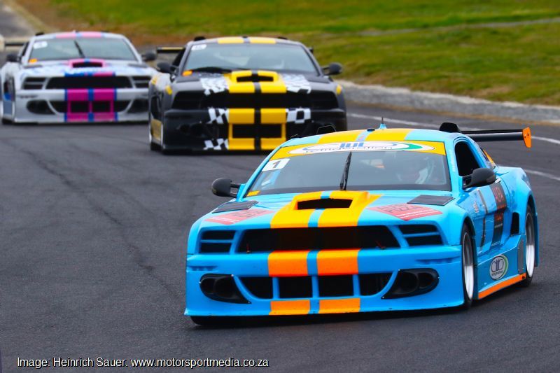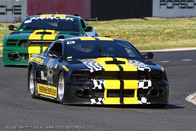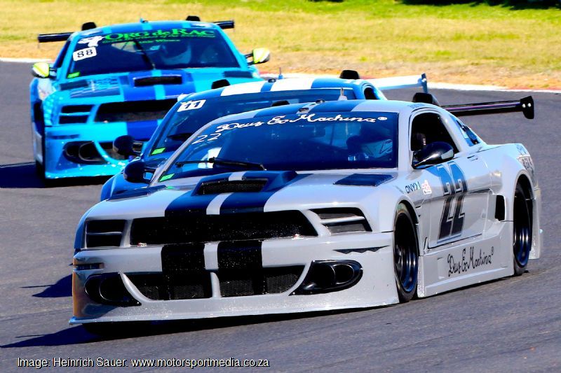 The Cape V8 Masters race identical 347kW Ford V8-powered machines developed by the late Owen Ashley to provide a thrilling equal playing field reserved for more mature drivers. The cars that look like Mustangs are in fact custom built racers and they compete mainly at Killarney in Cape Town, where the series is based in the new pits. V8 Masters does travel to away races through the year too and while it is Killarney-based, V8 Masters also attracts several upcountry gentleman racers who prefer to do their racing in the Cape. The series is limited to drivers older than 40 years and races in two classes — the quicker Gold and Silver, each counting towards its own title.
